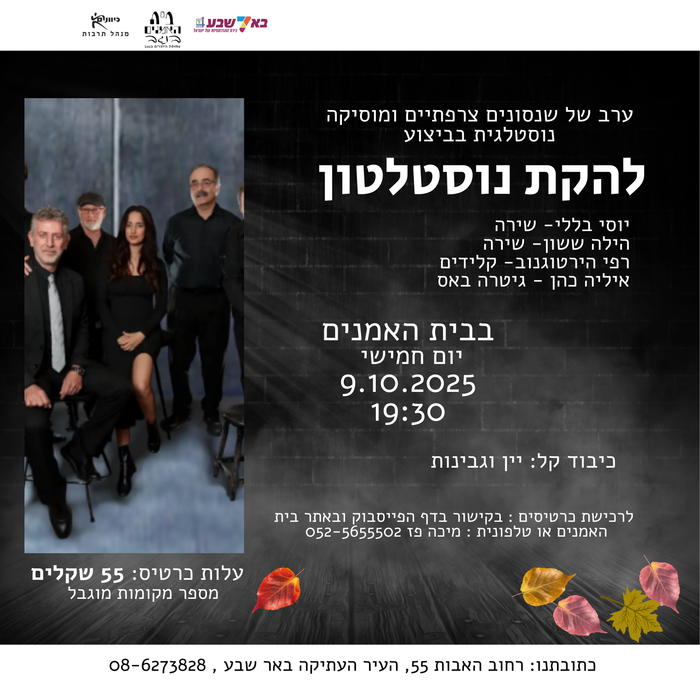 ביקור פיזי בבית האמנים, רח' האבות 55 באר שבע,