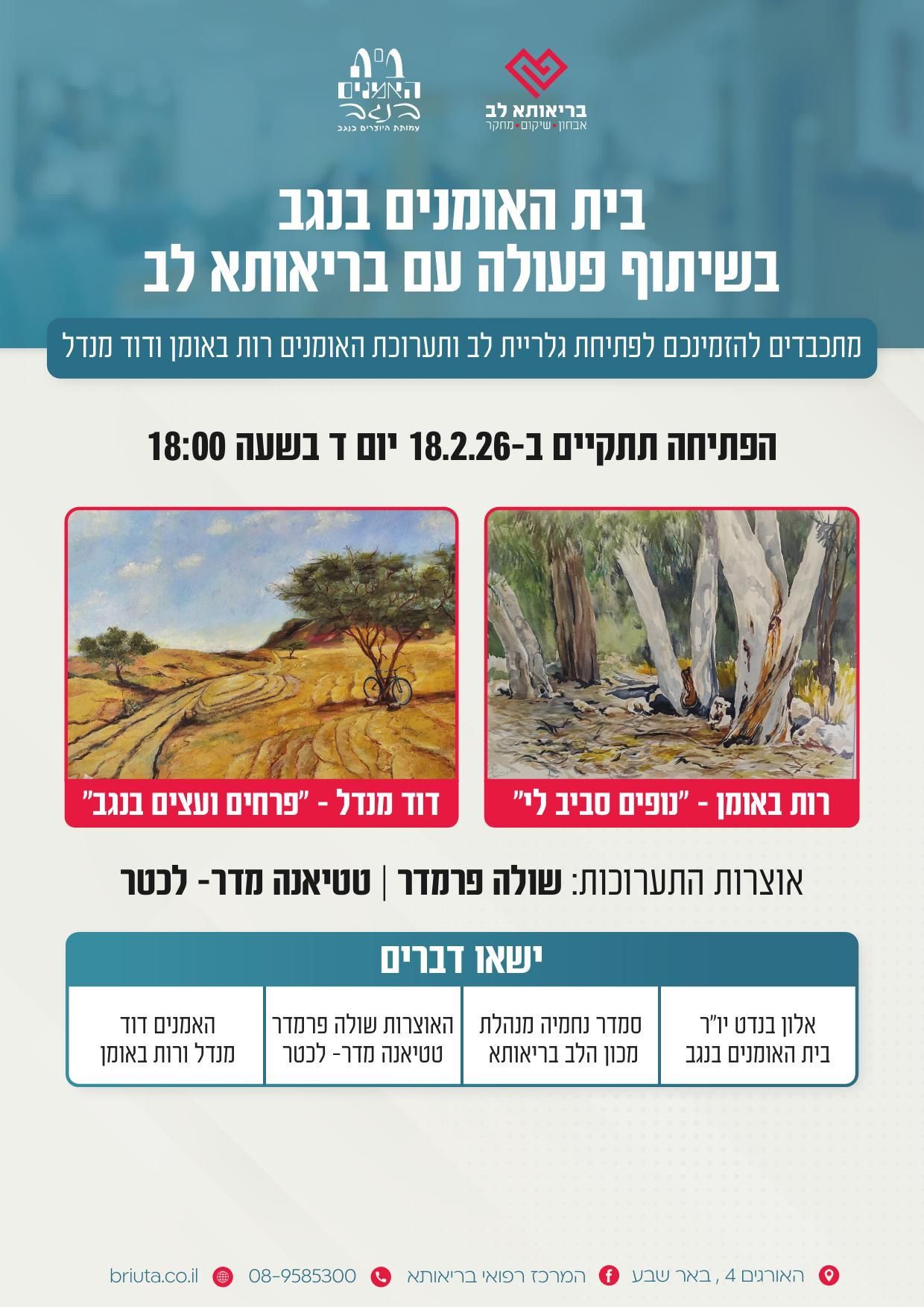 ביקור פיזי בבית האמנים, רח' האבות 55 באר שבע,