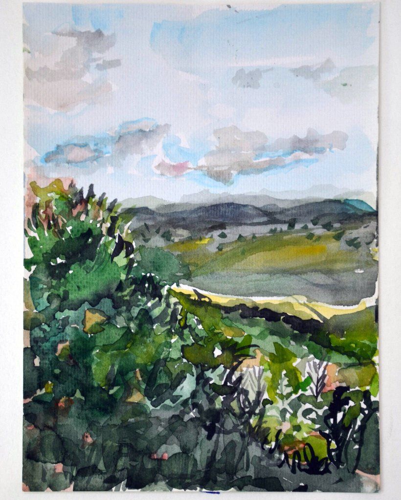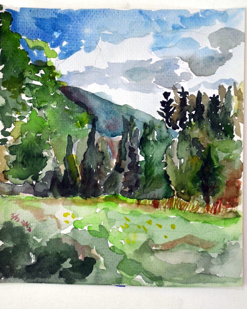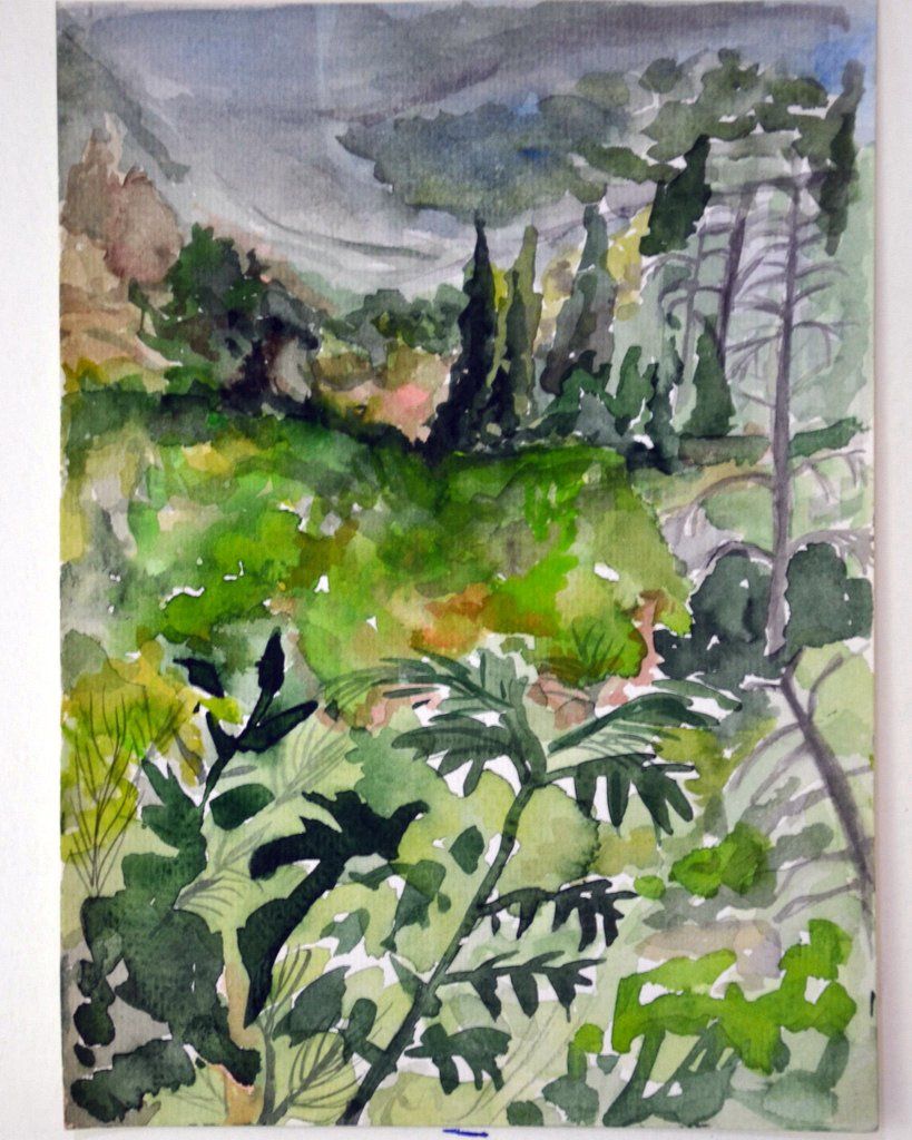 תחום אחר – אקוורלים. נוף, מופשט דמויות, בשילוב עפרון ודיו.